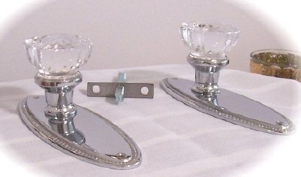 Depression Crystal Glass/Chrome Dummy French door Knob Set - Each set contains all the hardware for knobs on both sides of one French Door. Feature
